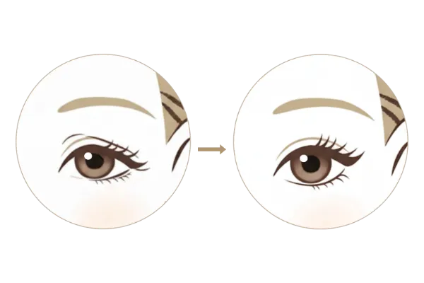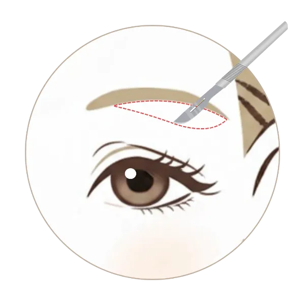 眉毛の下に沿って皮膚を切開し、たるみにより余った皮膚を切除したうえで丁寧に縫合します。